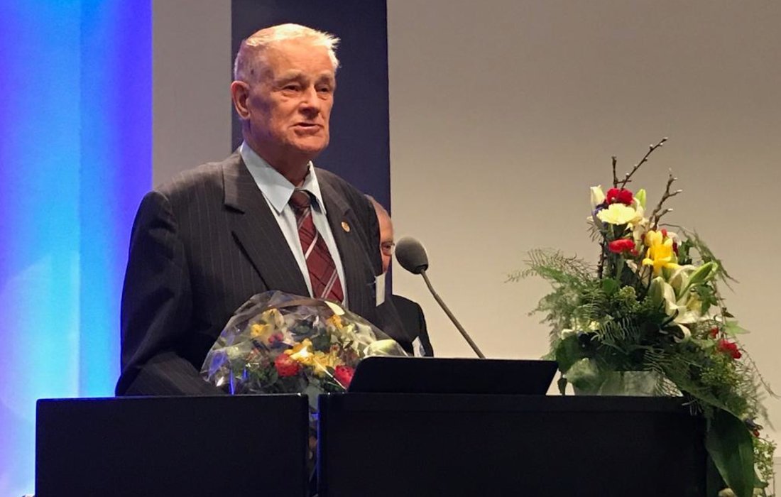 Kauppatieteiden tohtori Veijo Riistama palkittiin elämäntyöstään Tilintarkastajapäivässä tammikuussa 2019.