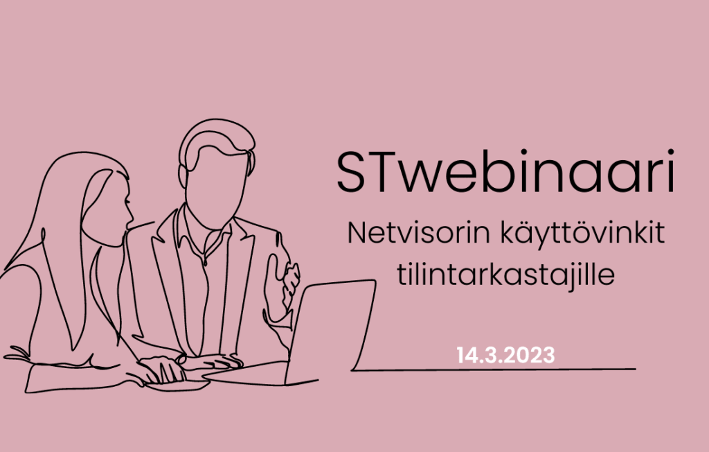 Tilintarkastajat käyttävät työssään useita erilaisia taloushallinnon ohjelmistoja. Haluamme tukea jäseniämme ohjelmistojen tuntemuksessa ja tehokkaassa käytössä, ja järjestämme siitä syystä tänä vuonna maksuttomia STwebinaareja yhteistyössä eri ohjelmistotalojen kanssa. Ensimmäinen webinaari koski Netvisorin käyttöä.