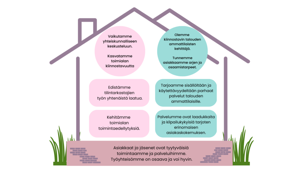 Yhdistyksen strategia on uudistettu keväällä 2023. Kuten aiemmin, myös nykyisessä strategiassamme toimintamme keskiössä ovat tilintarkastajat sekä muut talouden ammattilaiset.