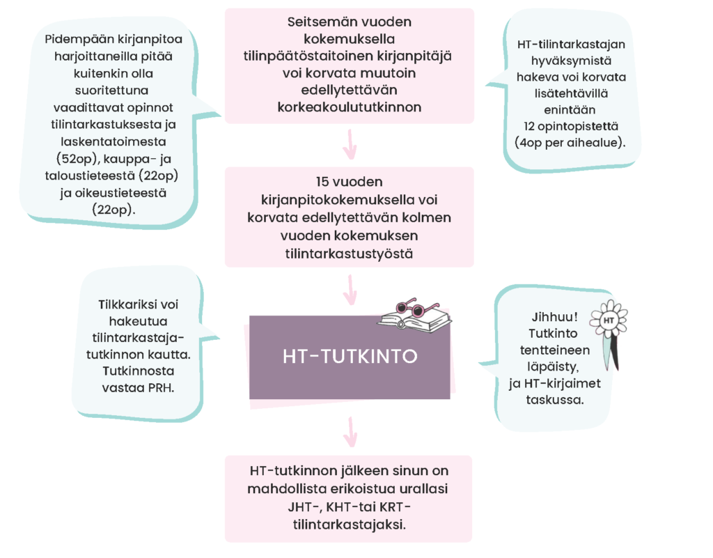 Tie tilintarkastajaksi käy opintojen, työkokemuksen ja tutkintojen kautta. Matka ei ole yksiselitteinen; urapolkuja on yhtä monta kuin tilintarkastajiakin ja jokaisen tilkkarin urapolku on omanlaisensa.